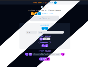 A utility app for configuring and running ffmpeg comands. Can be used to batch convert or edit audio and video files.